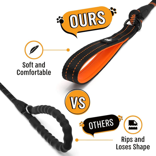 Strong Dog Rope Leash with Soft Comfortable Padded Handle and Highly Reflective Threads, for Small, Medium and Large Dogs, Puppy Leash for Training, Running and Walking